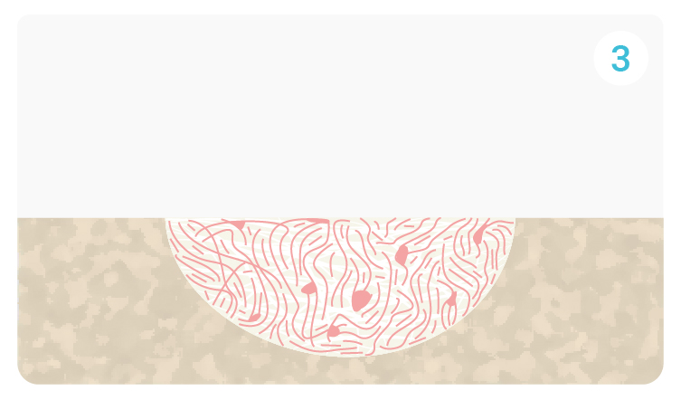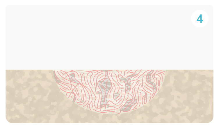 Les ostéoblastes, cellules progénitrices, pénètrent dans le QuickSet à travers les pores et se fixent dans la lacune de résorption. Ces cellules génèrent et déposent des composants de matrice extracellulaire (MEC), principalement du collagène de type I, le principal composant protéique de l’os.