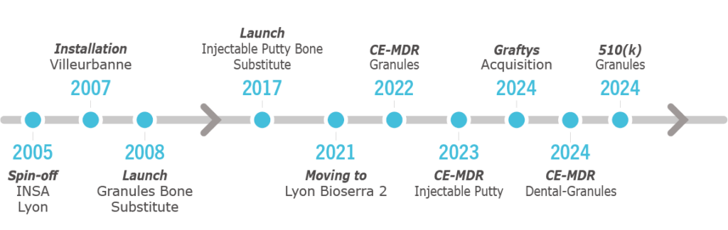 NORAKER a bâti son développement sur une stratégie de différenciation par l’innovation, notamment basée sur l’utilisation de verre bioactif 45S5 dans la conception de ses dispositifs médicaux bioactifs.